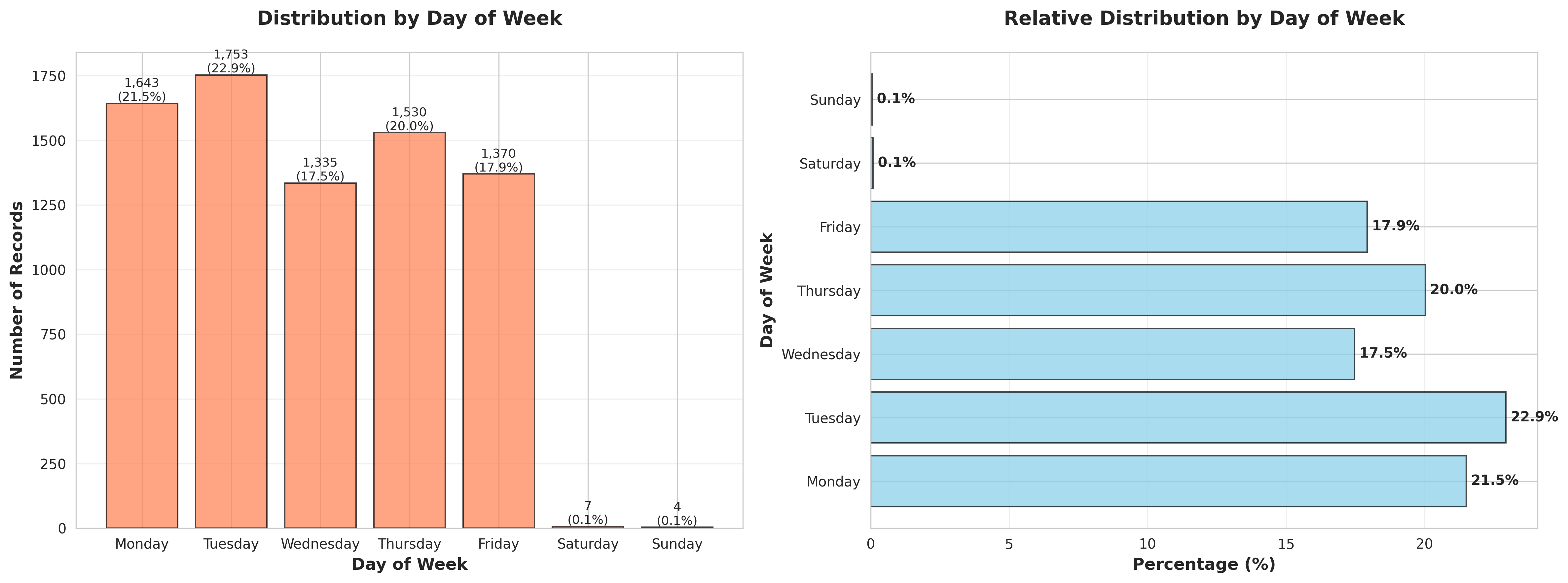 Tuesday: 1,753 records (22.94%)
